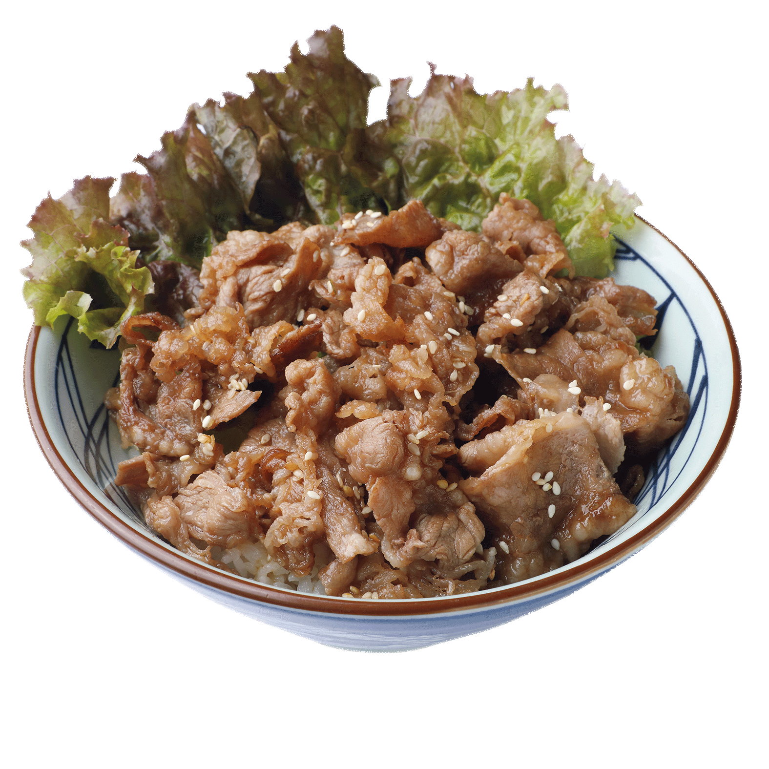 Japanese rice topped with thinly-sliced beef, sliced cabbage and sesame seeds.